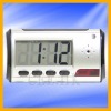 Digital Mini Camera Clock with Remote Control and Motion Detection ThisbrandnewDigitalMini camera Clocklooksandworksjustlikea normaldesk clock,buthidden insideisavirtuallyundetectablepinholevideolensthatletsyoucovertlytakepicturesandrecordvideoandaudio! Specificetion 1.PrimaryFunction:SurveillanceDigital MiniCameraClock 2.Memory:4GBMicroSDCardincluded(32GBmax) 3.Visionangle: 72 4.VideoResolution:640*480 5.Videoformat:AVI(MJPG) 6.VideoFPS:30fps 7.Pictureformat:JPG 8.PictureResolution:1600*1200(2MP) 9.Built-inMIC:Yes 10.AudioRecording:WAV 11.FileSize: 25MBfor1minuteofvideorecording 1.2MBfor1minuteofaudiorecording 12.Remoteoperatingdistance:15m 13.Powerconsumption:130MA/3.7V 14.USBInterface:2.0 15.Operatingsystem:WIN2000/XP/Visat32/7 16.Continuousvideorecordingtime:About12hoursonafullcharge 17.Chargingtime:About4hours 18.Dimensions:15x10x9cm ProductNotes 1.Includesallnormalclockfunctions 2.Includesalarmclockwith10minutesnooze 3.Around25MBfor1minuteofvideorecording 4.Around1.2MBfor1minuteofaudiorecording 5.Longlastingbattery,canlastfor12hrswhilerecordingvideo,25hrswhilerecordingsound 6.Free4GBTF/microSDcardincluded(Supportsupto32GB) 7.Includesremotecontrol 8.Motiondetectionvideorecordingrecordsin3minuteintervals PackageContents 1.DigitalMini CameraClock 2.USBCable 3.PowerAdapter 4.RemoteControl 5.Battery 6.SoftwareCD 7.FreeTravelAdapter(forUK,AU,NA,SAcustomers)